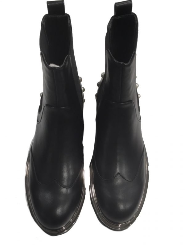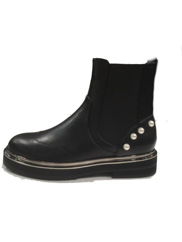 Calzatura dallo stile metropolitano arricchita dall’applicazione. Una scarpa dal carattere rock con un’anima stilosa e raffinata. Il colore è black ed il fondo è in gomma il guardolo argento lucido. Calzata dal 35 al 40.