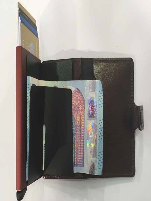 - un Cardprotector in alluminio co sistema brevettato di estrazione carte (max 6) che scherma le stesse da operazioni indesiderate;